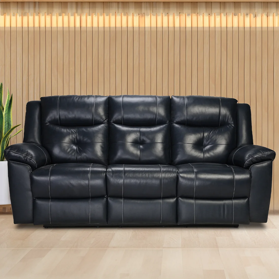 3 Seater Living Room Recliner Sofa – Zeal: Introducing the Three Seater Recliner -Zeal, a perfect fusion of contemporary style and practicality. Dressed in timeless black and adorned with luxurious Half Leather Upholstery, it exudes a sleek and sophisticated aesthetic. The Motorized reclining mechanism ensures personalized comfort, while the fixed middle seat provides stability and ample seating space. Ideal for gatherings or unwinding in style, this recliner offers an exceptional balance of form and function. The Zeal embraces understated elegance and convenience, making it an exceptional addition to any living area that values both aesthetics and comfort.