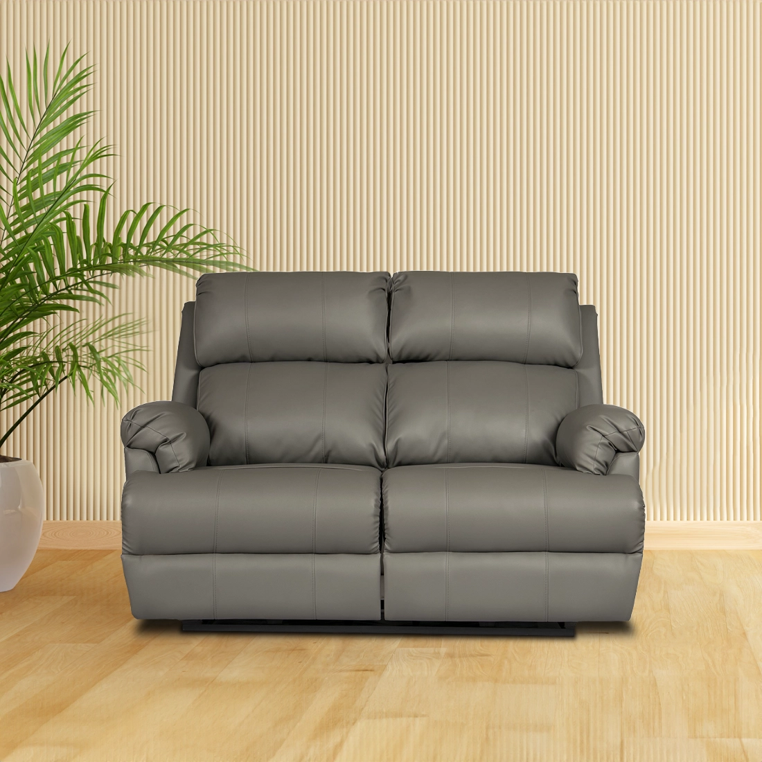A cushioned Style-765/369 two seater recliner sofa with grey PVC upholstery makes you feel pampered. To match your room decor, you can choose the other upholstery option. Due to its soft two-section back, it provides extra head support and lumbar support. Polyfill can be added or removed in the back to adjust the level of comfort. The cushioned padded armrest provides maximum support for your hand.