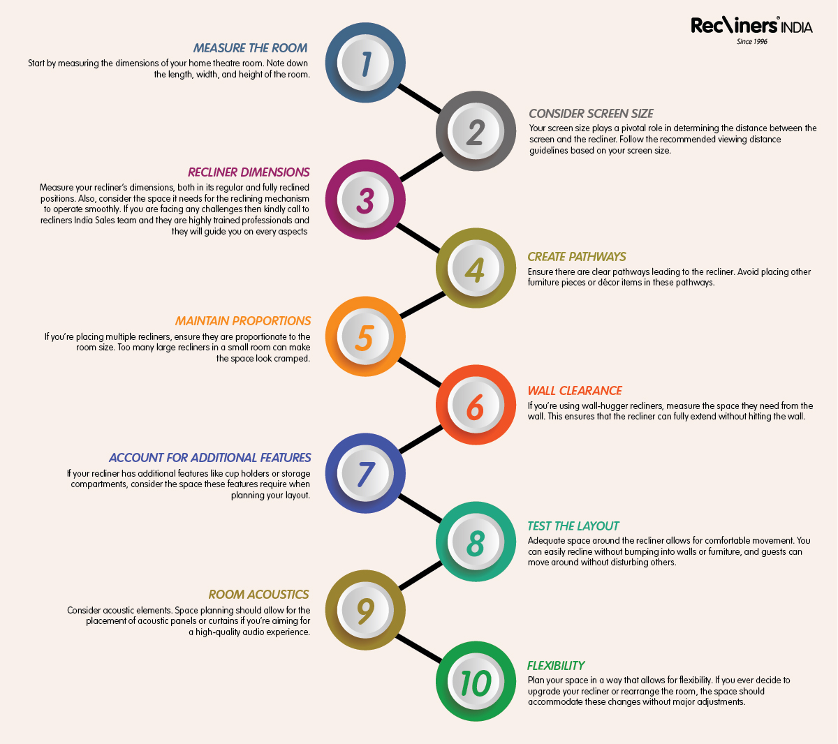 Colours: Opt for colors that complement your home theater’s design and style. You can ask Recliners India about the color combination and they will assist you accordingly