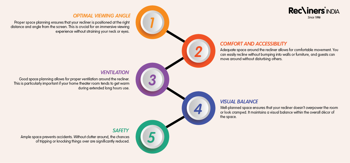 Ventilation: Good space planning allows for proper ventilation around the recliner. This is particularly important if your home theater room tends to get warm during extended long hours of use.